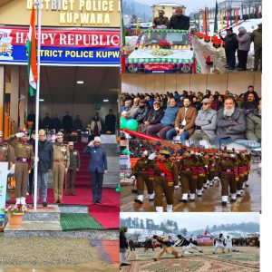 The main function of Republic Day celebration was held at District Police Lines Kupwara where Chairperson, District Development Council (DDC) Kupwara, Irfan Sultan Panditpori unfurled the National Flag, inspected the parade and took salute at march-past presented by contingents of JKP, JKAP, CRPF, IRP, Home Guards, FPF, Special Commandos, Police Band, and school children. Besides, in a scintillating spectacle, Tableaus (Jankis) were also presented by different departments during the parade which showcased achievements and welfare Schemes.