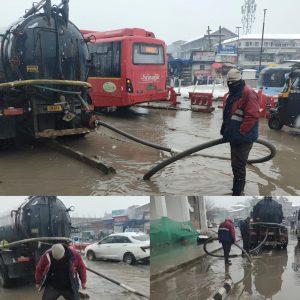 SRINAGAR, JANUARY 28: On the directions of the Commissioner, Faz Lul Haseeb, the Srinagar Municipal Corporation (SMC) launched an intensive, city-wide de-watering operation to mitigate waterlogging triggered by recent snowfall and subsequent snowmelt.