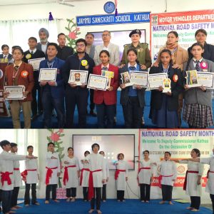Deputy Commissioner Kathua, Rajesh Sharma was the chief guest on the occasion. Students of the school actively participated in the programme and presented their views highlighting the importance of following road safety rules while driving vehicles.