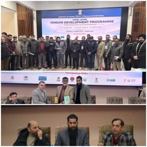 SRINAGAR, FEBRUARY 04: Ministry of Micro, Small and Medium Enterprises (MSME), through its field office Branch MSME Development & Facilitation Office (DFO), Srinagar, organised a first-of-its-kind Vendor Development Programme (VDP) involving 9 CPSEs in the Kashmir region, aimed at strengthening market linkages between Central Public Sector Undertakings (CPSUs) and local Micro & Small Enterprises (MSEs).