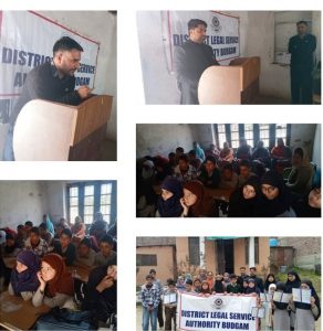 BUDGAM, MARCH 09: District Legal Services Authority, Budgam (DLSA Budgam), under the aegis of the J&K Legal Services Authority and under the chairmanship of O. P. Bhagat, Chairman, DLSA and Principal District & Sessions Judge, Budgam, successfully conducted an awareness programme on International Women’s Day at Government Middle School Nagam, Chadoora.