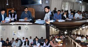 RAJOURI, MARCH 26: Deputy Commissioner Rajouri, Abhishek Sharma chaired a meeting to review the status of grievances collection and correction of errors identified during Digitised Jamabandi Reading Camps including quasi-judicial and non-quasi-judicial instances, besides taking stock of digitization of backlog mutations across the district.