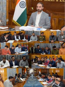 PULWAMA, MARCH 27: Deputy Commissioner (DC) Pulwama, Dr. Basharat Qayoom today chaired a comprehensive meeting at the Administrative Complex here to review the status of stock, supply and distribution of essential commodities, particularly Petrol, Diesel and LPG, across the district.