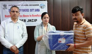 SAMBA, APRIL 01: District Development Commissioner (DDC) Samba Ayushi Sudan today inaugurated the distribution of insulated ice boxes among fishermen and fish farmers at a function held in the meeting hall of DC Office Complex.