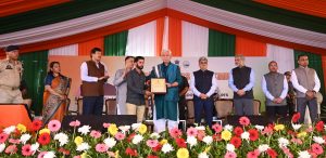 The Lieutenant Governor handed over handheld X-Ray Machine to the health department, and also felicitated TB Warrior, progressive farmers and land donor for establishment of Model Anganwadi Centre.