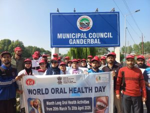 GANDERBAL, APRIL 20: A month-long Oral Health programme organised by District Hospital (DH) Ganderbal concluded today on a vibrant and positive note with a walkathon aimed at promoting awareness about oral hygiene.