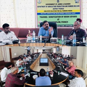 POONCH, APRIL 27: The Department of Agriculture Poonch, under the guidance of the District Development Commissioner Ashok Kumar Sharma today organized a one-day training programme for Krishi Udyamis engaged under the HADP project “Innovative Extension Approaches in Agriculture.”