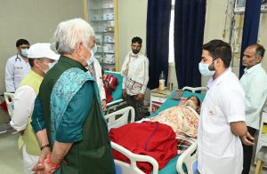 UDHAMPUR, APRIL 27: Lieutenant Governor Shri Manoj Sinha today visited Government Medical College, Udhampur to inquire about the health and well-being of those who sustained injuries during the unfortunate road accident in Ramnagar, Udhampur on April 20.