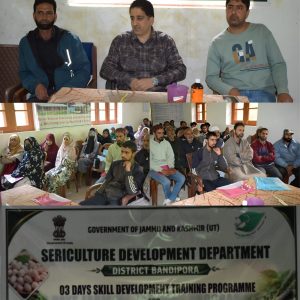 The programme is being supervised by District Sericulture Officer Bandipora, Dr. Inayat Saleem Fazili, while technical sessions are being conducted by expert resource persons from Kupwara and the concerned Zonal Incharge of the district.